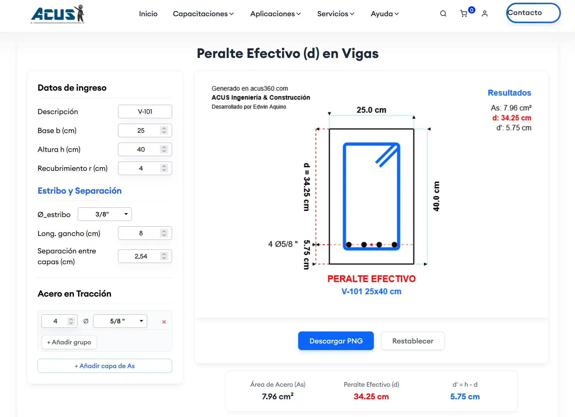 Cálculo del peralte efectivo en vigas en cuestión de segundos y descárgala en una imagen.